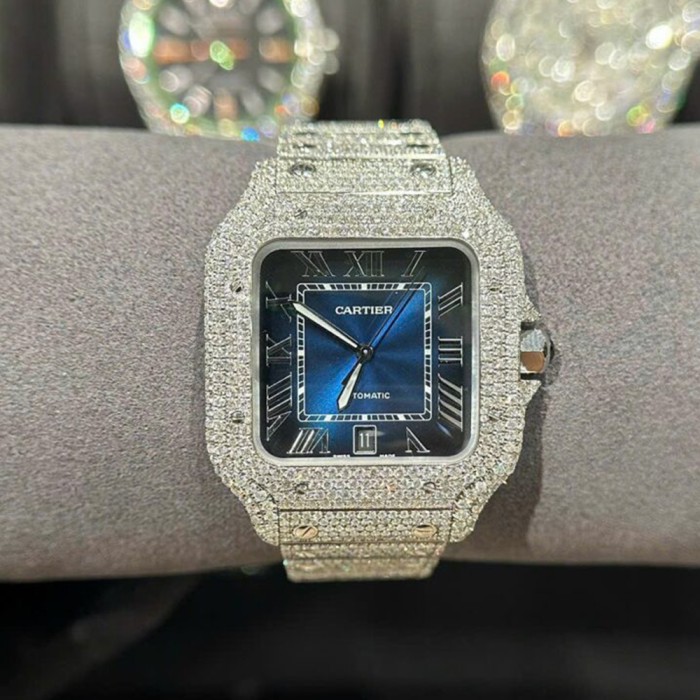 까르띠에 산토스 VVS 다이아 파베 세팅 청판 다이얼 > 커스텀 제작