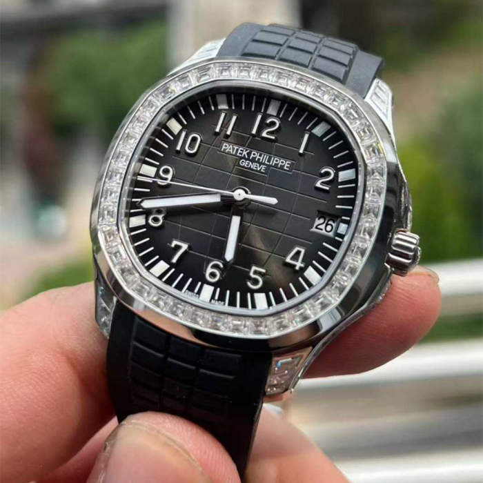 • 커스텀 텅스텐 파텍필립 아쿠아넛 블랙 다이얼 모이사나이트 파베 세팅 5167